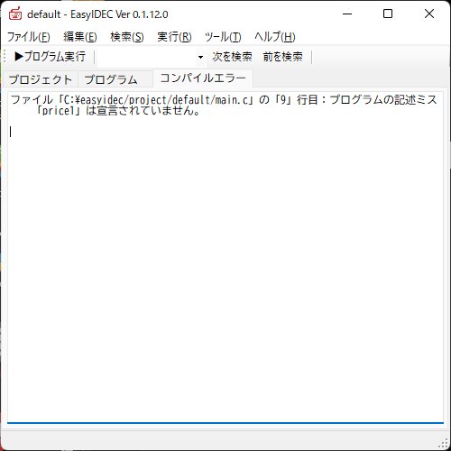 | Ver 0.1.12.0 | 2021/09/14 | Modified the Tiny C Compiler to support Japanese folder names Localizing the majority of Tiny C Compiler error messages into Japanese If JIS invalid characters are found in the source code, an error message will be displayed. Simplify the file addition menu Change the app icon |